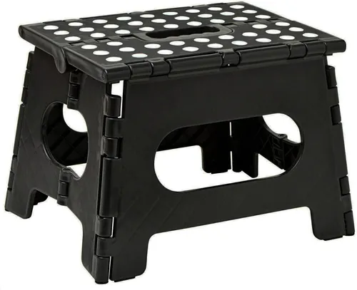 This sturdy step-stool stands 9 inches tall and has the capacity to hold up to 300 lbs. It has a non-slip, textured surface.