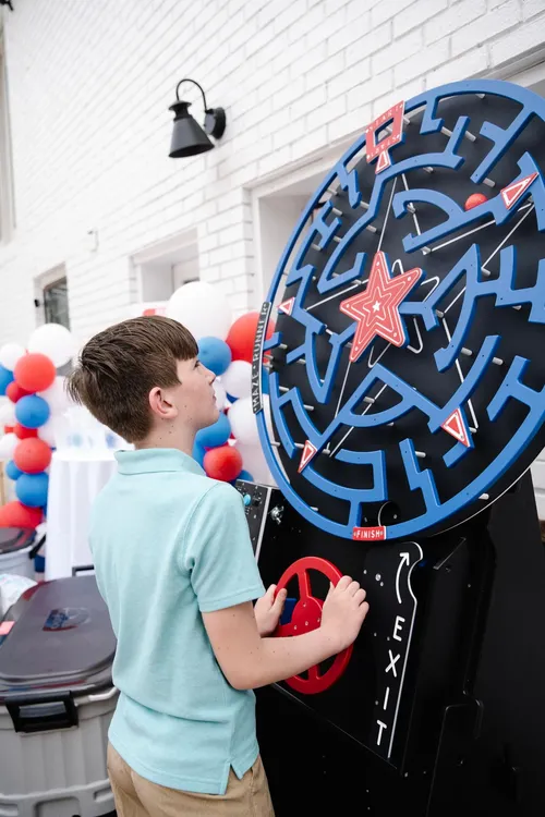 Toss bean bags at this 7-foot wall of clown targets. Go head to head for targets or time yourself to clear the wall. The ultimate crowd pleaser.